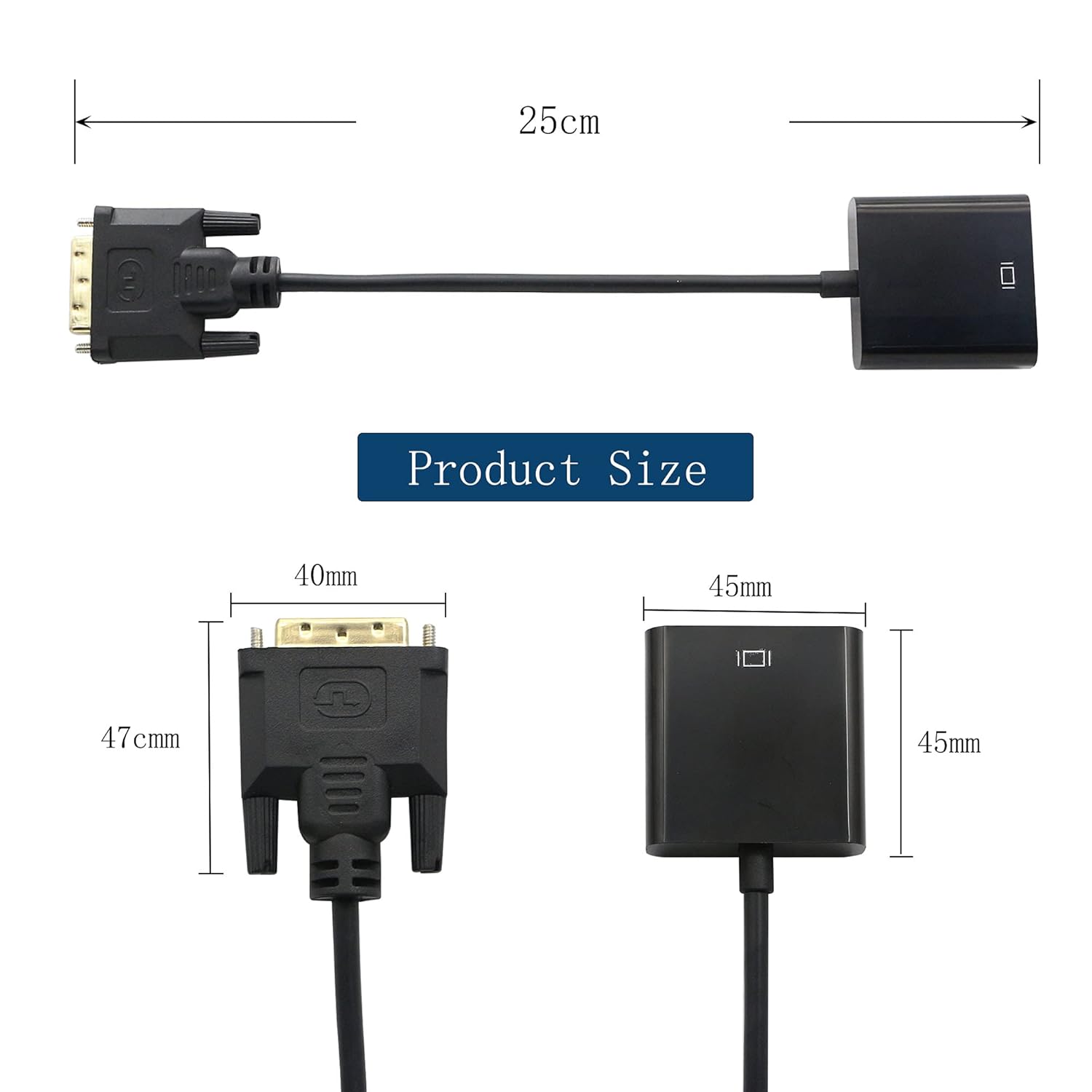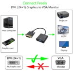 DVI-auf-VGA-Adapterkabel. Funktionsweise DVI-D 24+1 auf VGA-Buchse. Zum Anschluss eines DVI-Anschlusses für Desktop, Laptop, Videokarte an einen VGA-fähigen HDTV, Monitor, Projektor. Unterstützt nur digitales Signal, und VGA unterstützt keine Audioausgabe.